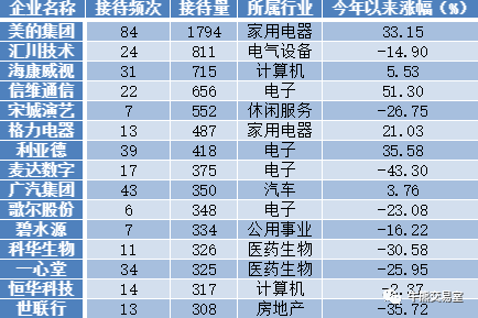 截止到昨天,上市公司接到机构调研数目超过100家的上市公司有178个,超过200家的有53个。牛熊交易室发现,个股被调研次数和今年的业绩表现从整体数据上来说没有太强的相关性。牛熊交易室列出调研数目超过300家的上市公司。